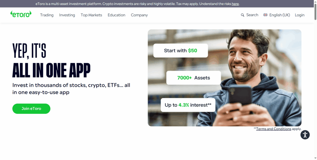 - 5,000+ tradable assets including stocks, crypto, ETFs